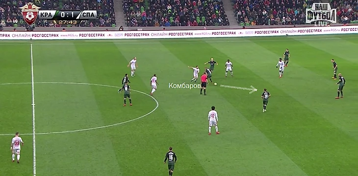 От сильных чисел Дмитрия Комбарова ваши глаза могли вылезти на лоб, но ничего абсолютно сенсационного здесь нет. При атаках «Спартака» Комбаров значительно чаще, чем раньше, и чаще, чем партнёр по правому флангу (Ещенко или Петкович), смещается ближе к центральной зоне. Дмитрий не боится брать игру на себя, тащить мяч через центр – так Комбаров начал строительство победного гола «Краснодара». Качества Комбарова как защитника всё ещё вызывают вопросы, но так было всегда – а в продвижении мяча вперёд Дмитрий сильно прибавил.