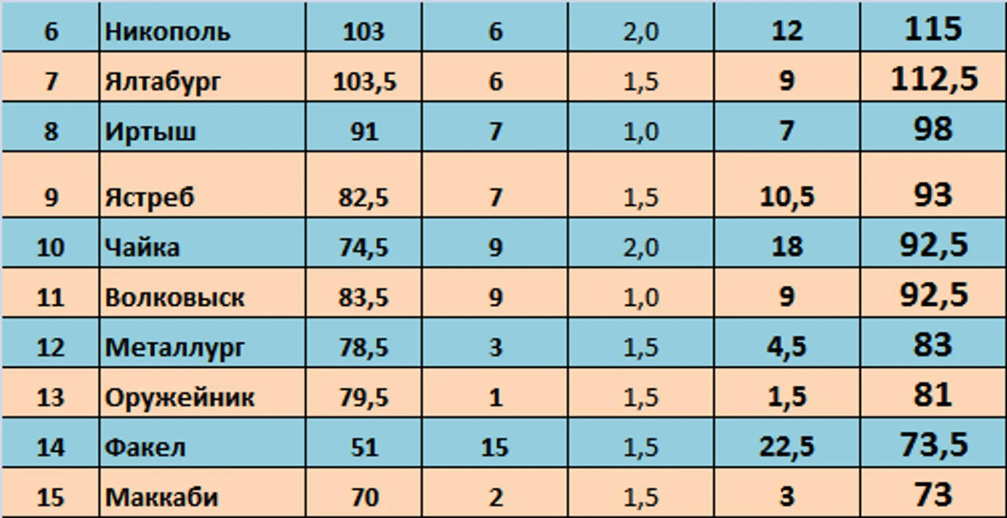 Хорошие шансы есть у Сибири, опережающей на 2 очка Ястреб и на 3 - Ялтабург.