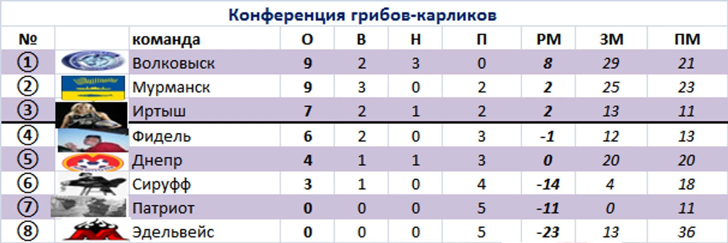 В Конференции лидируют Волковыск и Мурманск, набравшие по 9 баллов. Они поднялись наверх!