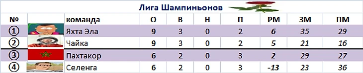 В Алой Розе ЛШ все 4 команды в теории могут закончить цикл с 9-ю очками!