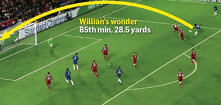 Но в этом матче все решали только кучерявые. На гол одного обладателя пышной шевелюры ответил другой. Конте изменил тактику после гола и бросил вперед атакующую тройку Фабрегас-Виллиан-Педро. Закончилось все голевым навесом Виллиана. Бразилец себе на удачу с навесом не рассчитал, а Миньоле вновь как в «лучших» матчах позволил мячу перелететь через него.