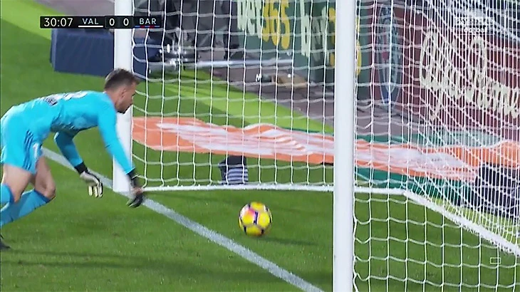 Удар Лионеля Месси с линии штрафной на 30-й минуте матча с «Валенсией» завершился скандальным эпизодом. Вратарь хозяев – Нето – не справился с приемом мяча – и тот запрыгнул в ворота. Это увидели все, за исключением главного арбитра матча Иглесиаса Вильянуэвы и бокового судьи Энрике Рамос Феррейроса. Они посчитали, что Нето вытащил мяч с линии ворот.