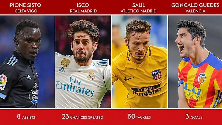 Гонсалу Гедеш, арендованный из ПСЖ, великолепен в составе «Валенсии», в этом сезоне он уже отметился тремя голами и пятью голевыми передачами. Пионе Систо из «Сельты» проводит выдающийся сезон. Три гола и восемь голевых передач - отличный результат игрока сборной Дании.