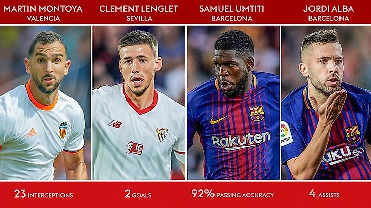 Клеман Лангле из «Севильи» забил уже два мяча в этом сезоне, а Мартин Монтойя из «Валенсии» сделал больше перехватов, чем любой другой игрок в его команде.