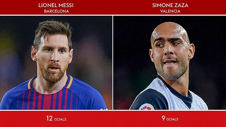 Маленький аргентинец ведёт за собой команду Эрнесто Вальверде. Месси возглавляет гонку бомбардиров чемпионата Испании с 12 мячами, у него 73 успешные обводки - это вдвое больше, чем у любого другого игрока Ла Лиги в этом сезоне. Нападающий «Валенсии» Симоне Дзадза снова попал в нашу команду, у него девять забитых мячей в 12 матчах в этом сезоне.