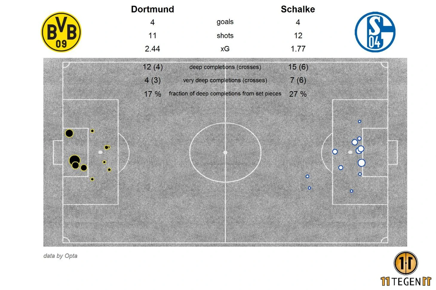 Шальке же загрузил фланги, в особенности правый, где действовали Калиджури и Харит. Решающий мяч, пришедший на добавленное время, был полностью заслуженным: убийственный на втором этаже Налдо (11 гол Шальке со стандартов в это сезоне) наказал Боруссию за ужасную опеку от Загаду.