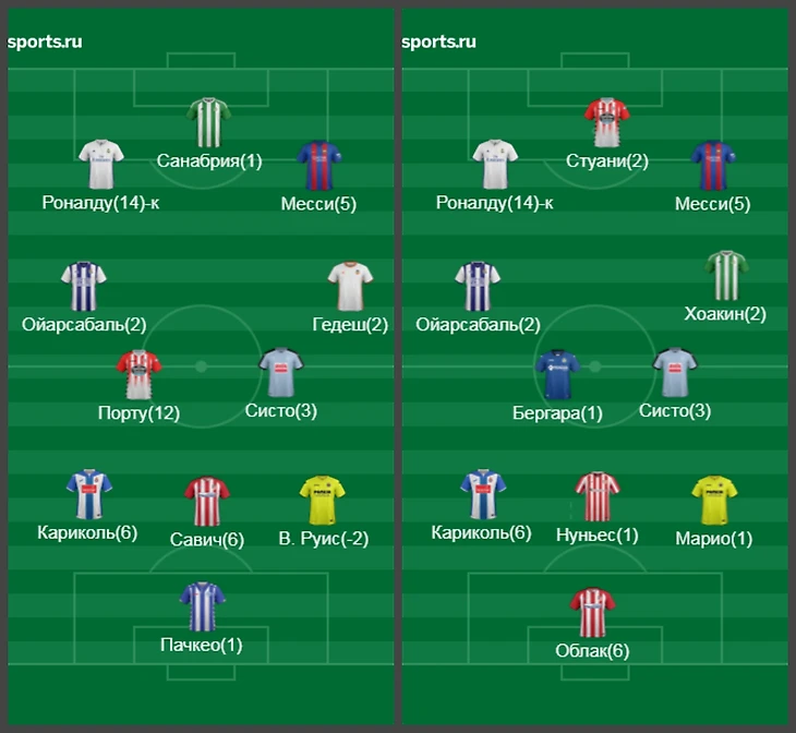 После голосования у нас как обычно суровый забег с препятствиями. Причем как естественными так и противоестественными. Каждую неделю мы с приглашенным экспертом набираем дрим-тим под отдельно взятый тур, причем отличительное условие нашего мозголомства - не более ОДНОГО юнита от команды Ла Лиги.