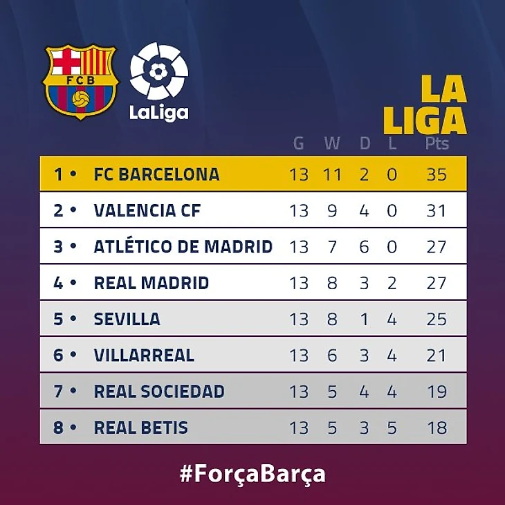 3. Плюс Барса выдала лучший старт по всем показателям. Однако Валенсия не сильно от нее отстала и при этом не проиграла очную встречу.