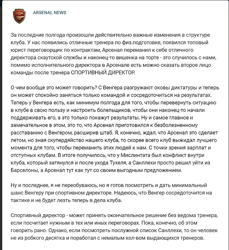 4. У "Арсенала" появится спортивный директор