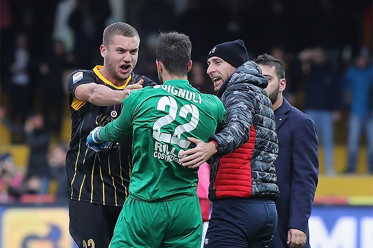 Развязка получилась соответствующей: на 95-й минуте вратарь хозяев Альберто Бриньоли примчался в штрафную хозяев на стандарт и забил головой. Это первый вратарский гол в Серии А с 2001-года – тогда Массимо Таиби забил за «Реджину».
