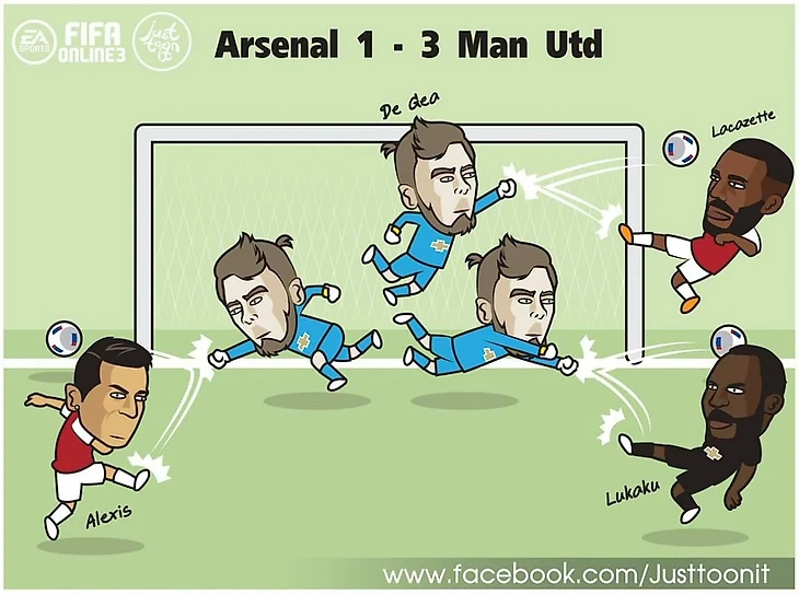 В начале игры "МЮ" прессинговал на половине поля "Арсенала". Это и привело к тому, что защитники "Арсенала" на 4 мин. и 11 мин. совершили ошибки, которыми манкунианцы не пренебрегли... Во втором тайме "Арсенал" отыграл один мяч, но на 69 минуте контратака с участием Погба и Лингарда завершилась голом последнего.
