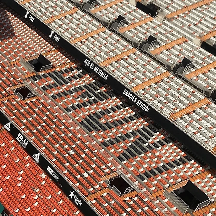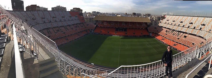 Мы встретились с Ласаро на «Месталье» – он открыл рыжую дверь, посадил меня в лифт и довез до верхней точки одной из башен старейшего стадиона примеры. Под каждым нашим шагом хрустела шелуха от семечек и обрывки газет, сворачивались пластиковые стаканы и пакетики – меньше дня назад играли «Валенсия» и «Барселона», 47 тысяч человек оставили на стадионе много мусора и нервов.