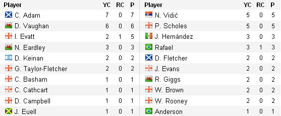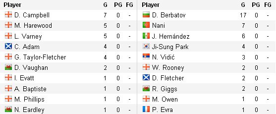 Ведущие бомбардиры: Бербатов– 18 голов (17 в Лиге), Эрнандес – 9 голов (6 в Лиге).