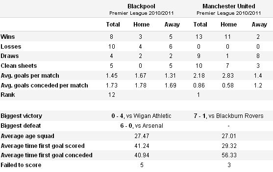 Но «Блэкпул» располагается на приятной для себя и для фанатов строчке в турнирной таблице даже после двух поражений. Поражения от «Манчестер Юнайтед» для них не станет роковым, но будет крайне неприятным. С Нового Года (с 2011-ого напомню, а то мало ли) у команды Холловея всего одна победа (зато какая!) над «Ливерпулем», но учитывая, что у «красных» в ту пору только-только поменялся тренер, то и эту победу можно назвать заслуженной с натяжкой, хотя на поле «Блэкпул» не оставил шансов команде Кэнни Далглиша.