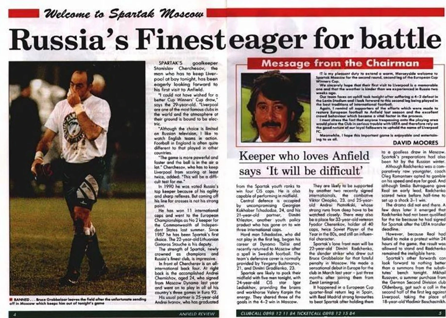 Ответный матч в Ливерпуле прошёл спустя несколько недель. В предматчевой программке клубная пресс-служба опубликовала короткое интервью с вратарём Станиславом Черчесовым, представив его так: «Человек, который сегодня будет держать в страхе «Ливерпуль».