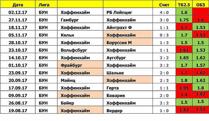 Следующий матч с «Ганновером» в гостях, который попал в черную полосу и за последние 4 игры набрал одно очко в домашней игре со «Штутгартом» 1:1 и уступил в гостевых матчах «Баварии» 3:1, «Лейпцигу» 2:1 и «Вердеру» 4:0. Несмотря на то, что «Хоффенхайм» играет в гостях он идет фаворитом, возможно это после крупной победы над «РБ», но вспомним, что туром ранее совершенно мертвый «Хоффенхайм» уступил «Гамбургу» в гостях. Также следует учесть, что дома многие команды бундеслиги играют увереннее за счет бешеной поддержки полных стадионов