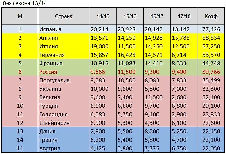 Даже без учёта сезона 13/14, который «сгорит» перед началом следующего розыгрыша еврокубков, мы пока уверенно удерживаем 6-ю строчку.