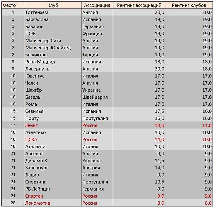 С нового сезона 20% рейтинга страны не будет приплюсовываться к командному и значение клубного рейтинга возрастёт. Любопытно, что по вкладу в рейтинг страны наш лучший клуб - «ЦСКА», а вот по вкладу в собственный клубный рейтинг, наоборот лидирует «Зенит».