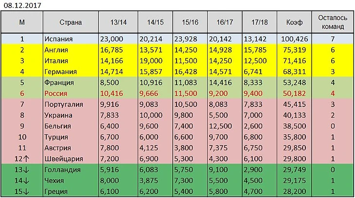 Коэффициенты УЕФА. 6-е место после 6-го тура