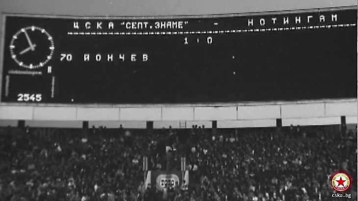 Четыре последних года Кубок европейских чемпионов был прописан в Англии. Дважды им владел «Ливерпуль» и ещё два раза «Ноттингем». Оба этих клуба стартовали в нынешнем розыгрыше. Первый как чемпион Англии, второй как обладатель Кубка Чемпионов. Тренер «Ноттингема» Б.Клоф, к удивлению многих, отказался предварительно просматривать своего соперника по первому раунду – чемпиона Болгарии ЦСКА «Септемврийско знаме», сообщив, что сейчас масса хлопот с собственной командой. Однако первый свой матч в Софии англичане проиграли 0:1. Правый крайний Енчев отправил мяч в сетку мимо вратаря сборной Англии Шилтона. Хозяева поля провели матч исключительно сильно и упорно таранили оборону именитой команды. Кроме того, значительно ослабило фаворитов дисквалификация Бёрнса и отсутствие из-за травмы форварда Френсиса. Теоретический шанс для ничьей был лишь у Робертсона, но мяч после его удара попал в штангу. В болгарской команде обозреватели выделяли острую игру в атаке Керимова и Маркова.