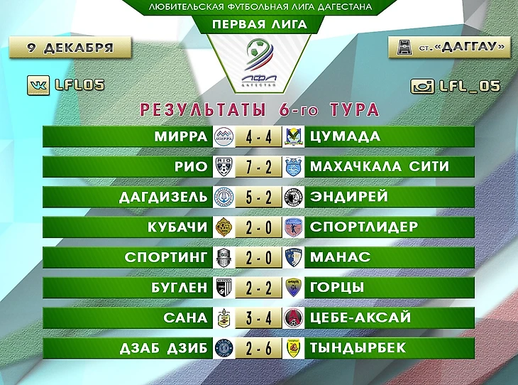 Руслан Багомедов практически легендарная личность для ЛФЛ Дагестана. Он основал «Реал Гостевой» впоследствии ставший титулованным «Капитал-Инвестом», также он приложил руку к созданию «Эльбина» и «Наполи». Неплохой список, не правда? Теперь Руслан всплыл в «Рио». Вместе с ним в команду пришел сильный форвард Ахмед Газимагомедов. Он сразу оформил дубль, но все же главным действующим лицом как всегда был Рашид Шуайбов. Главный голеадор «РИО» забил 4 раза – ровно на один больше, чем за все предыдущие матчи.
