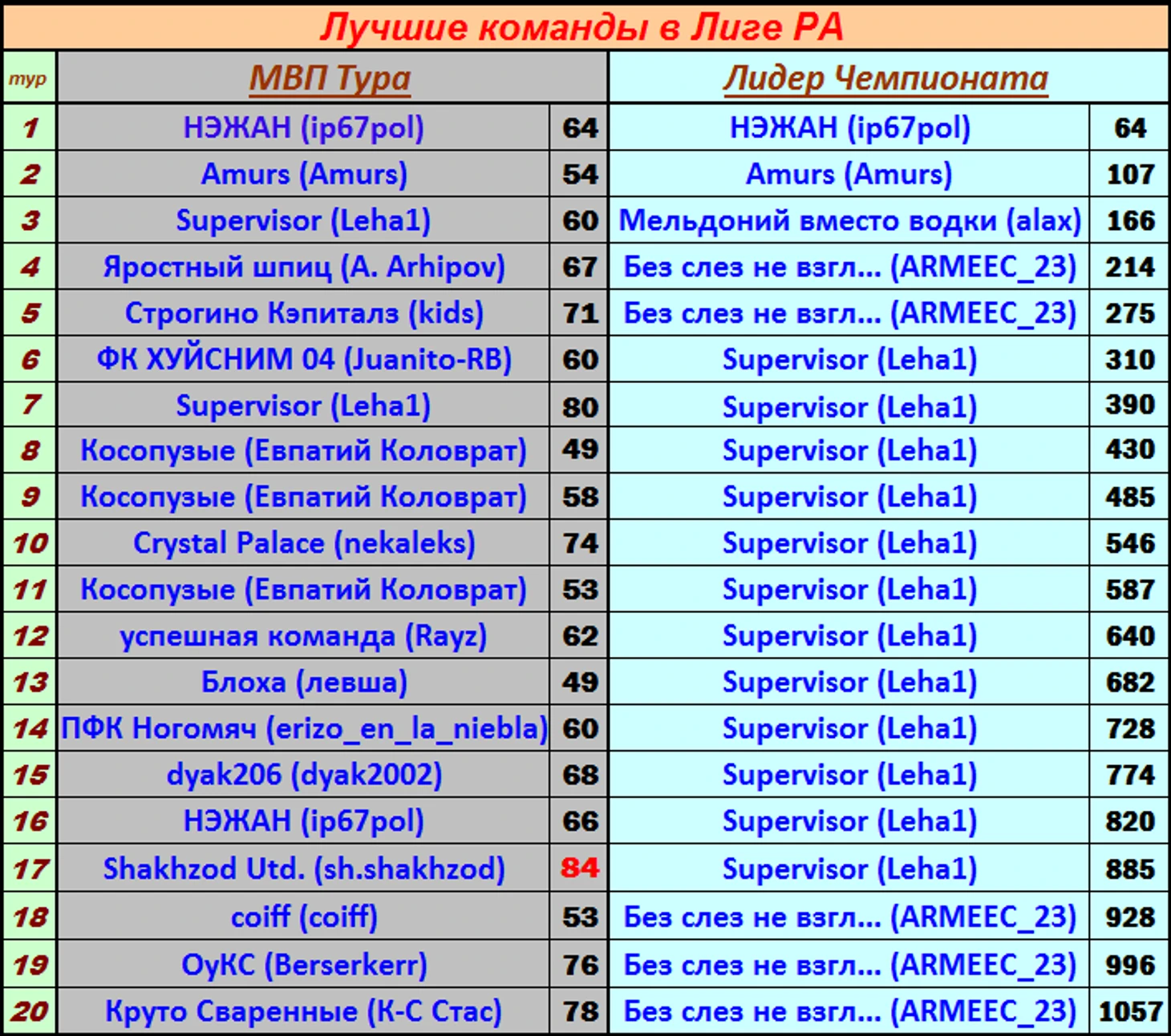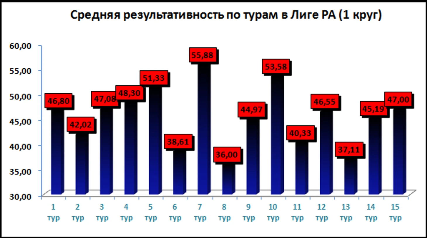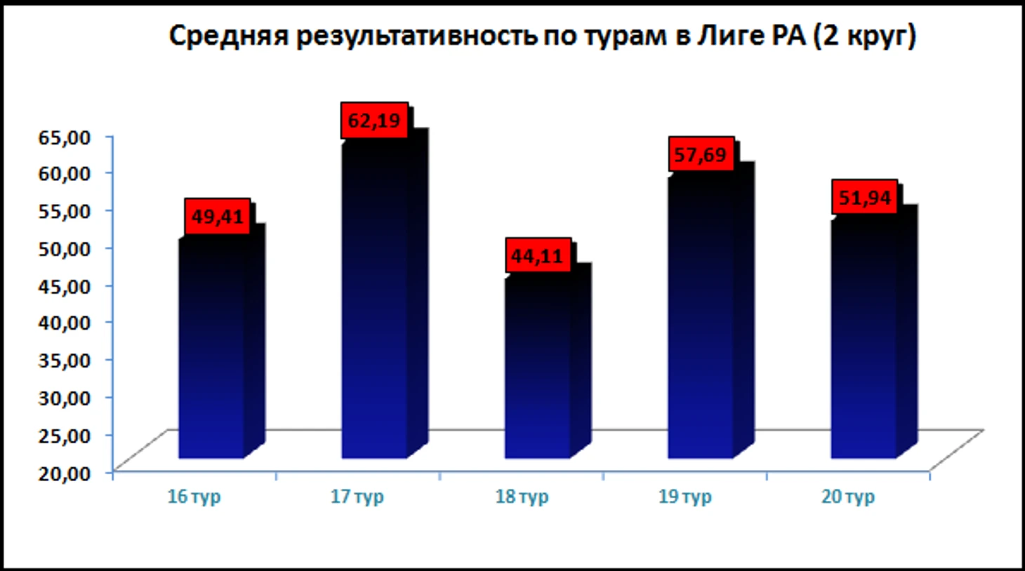 Самый результативный тур сезона в Лиге РА - 17 тур (62,2)