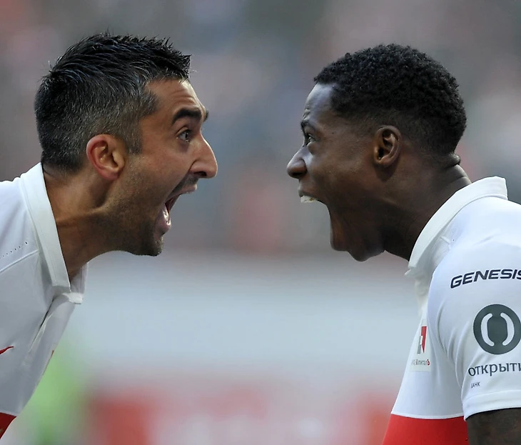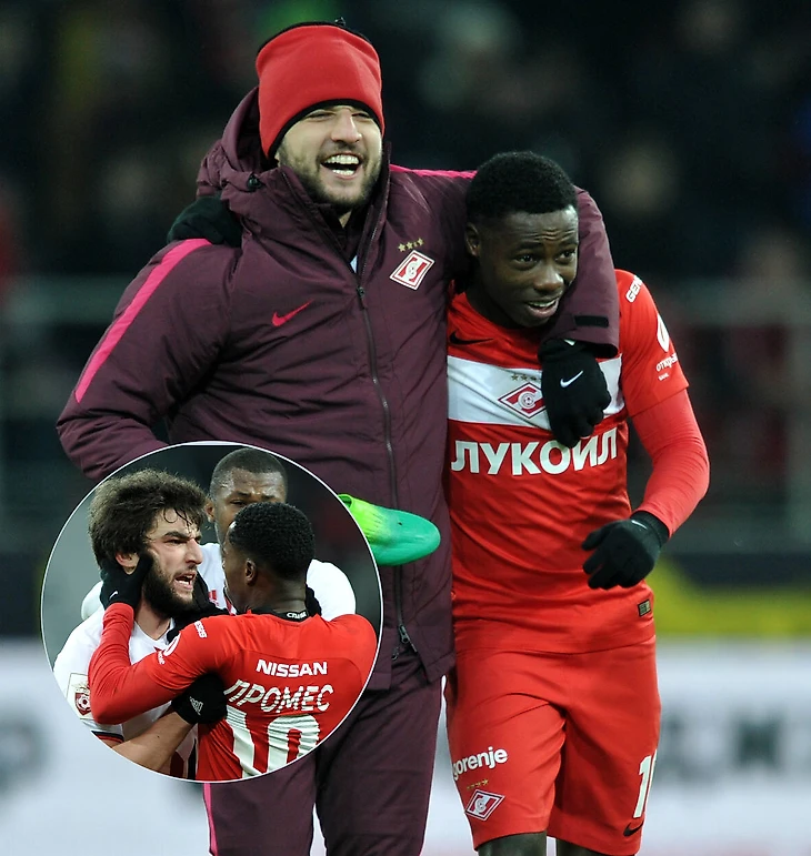 3 апреля 2017 года. Москва. "Спартак" - "Оренбург" - 3:2. Не прошло и полгода, как Квинси ПРОМЕС и Георгий ДЖИКИЯ стали друзьями.