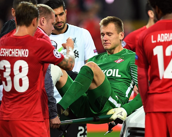 26 сентября 2017 года. Москва. Травма Артема РЕБРОВА в матче Лиги чемпионов "Спартак" - "Ливерпуль" - 1:1.