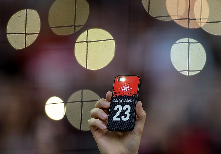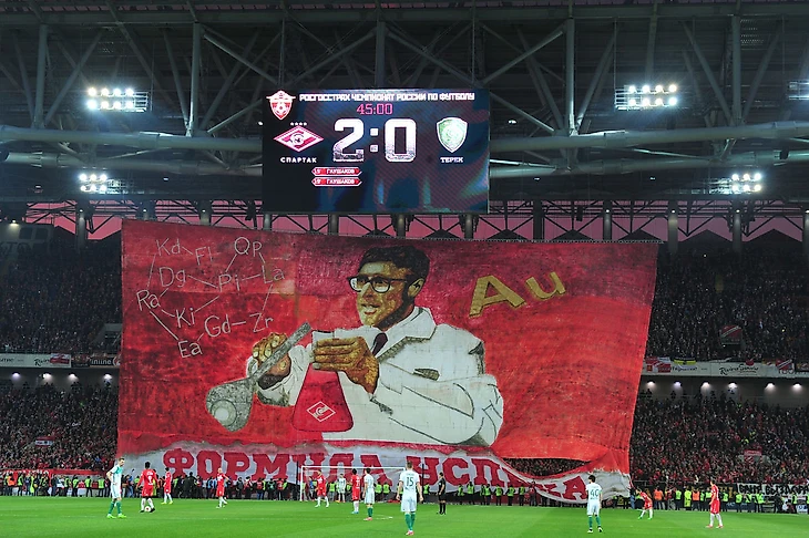17 мая 2017 года. Москва. "Спартак" - "Терек" - 2:0. На трибуне чемпионская формула Массимо Карреры.