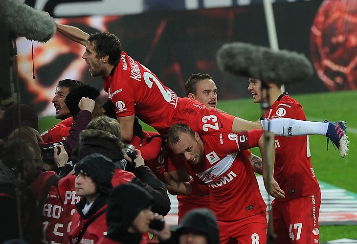 3 апреля 2017 года. Москва. "Спартак" - "Оренбург" - 3:2. Радость от победы над аутсайдером в тяжелейшей борьбе за чемпионство.