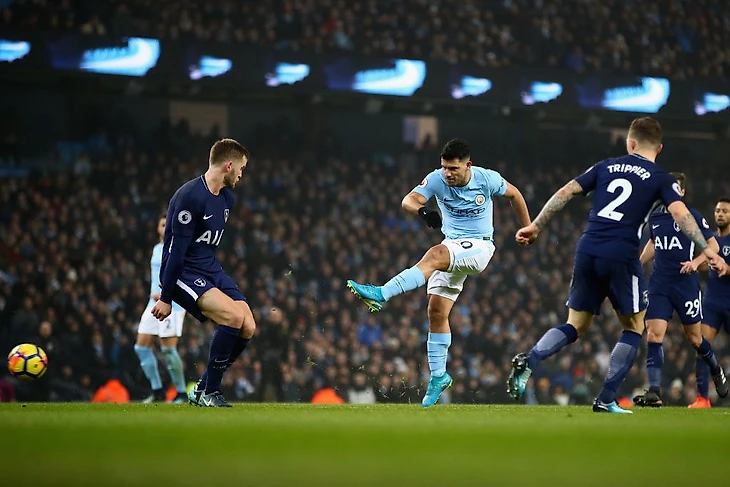 Проблемы начались и во многом продолжались по ходу поединка через правый фланг: Киран Триппьер никак не мог сладить с шустрым Лероем Сане, раз за разом проскальзывающим по своему правому флангу, и доставляющим своими постоянными набегами массу проблем. Так получилось на 9-й минуте, когда состоялся первый заметный прорыв, и прострел на набегавшего Агуэро, но тогда выручил Льорис. И постепенно, особенно это было видно в середине тайма, состоялся полноправный перехват инициативы. Вынужденно сжимаясь во время атак соперника, «Сити», в определенный момент, разжался с огромной скоростью, и просто снес соперника. Преимущество было таким подавляющим, что в некоторые моменты (и матча в целом) казалось, что хозяева находятся в численном большинстве. Огромные скорости. Душащий, выжимающий из команды все атакующие дыхания, прессинг, благодаря которому «Тоттенхэм» в том числе просто не мог выйти со своей половины, из-за чего активно подключая Льориса - из-за чего мяч уходил не своим, либо в борьбу, либо ни тем ни другим.