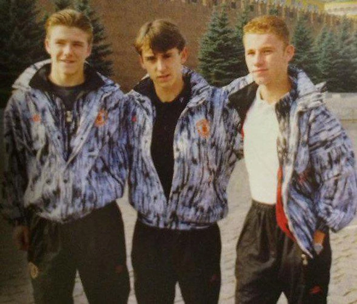 Бекхэм, Невилл и Батт гуляют по Красной Площади, 90-ые.