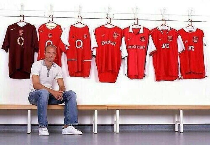 Деннис Бергкамп и все его домашние формы, с которыми он выступал за «Арсенал».