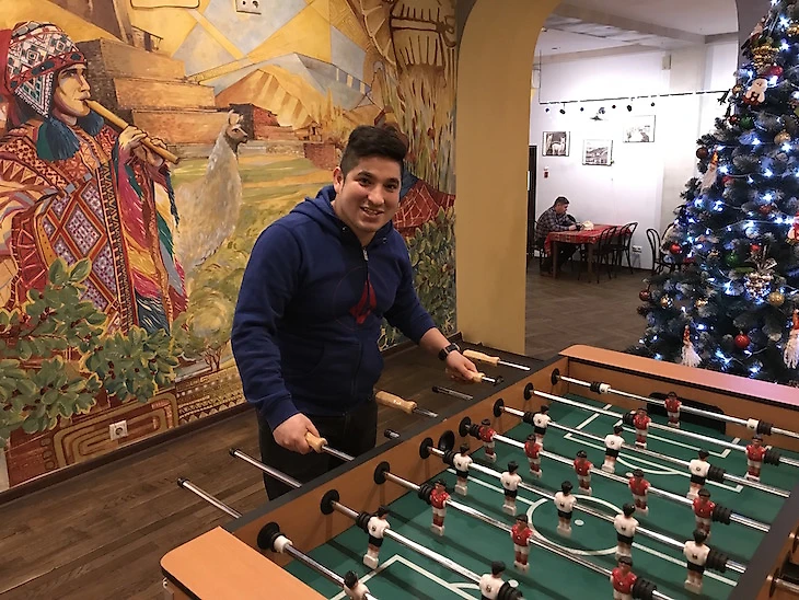 – Джефферсон приходит часто, он скучает по блюдам, которые нереально найти в России. Например, пикантную курицу в сливочном соусе (ají de gallina). Он ужинает после игр где-то раз в неделю – сейчас «Локомотив» побеждает, у Фарфана хорошее настроение. Он подарил мне футболку с автографом, я отправил ее маме в Перу.