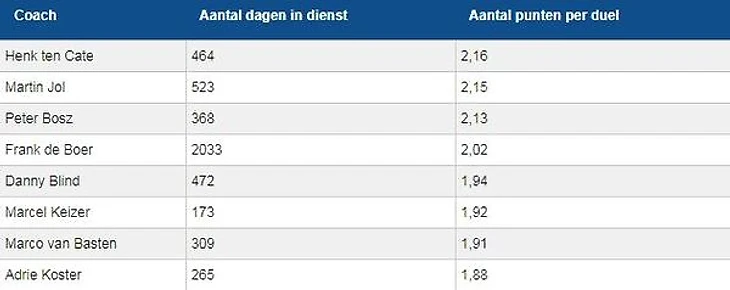 Таким образом, показатели Кайзера за первый круг проигрывают лишь двум кругам Франка де Бура, когда по итогам всего сезона «Аякс» оставался вторым в чемпионате, уступая на финише чемпионство ПСВ.