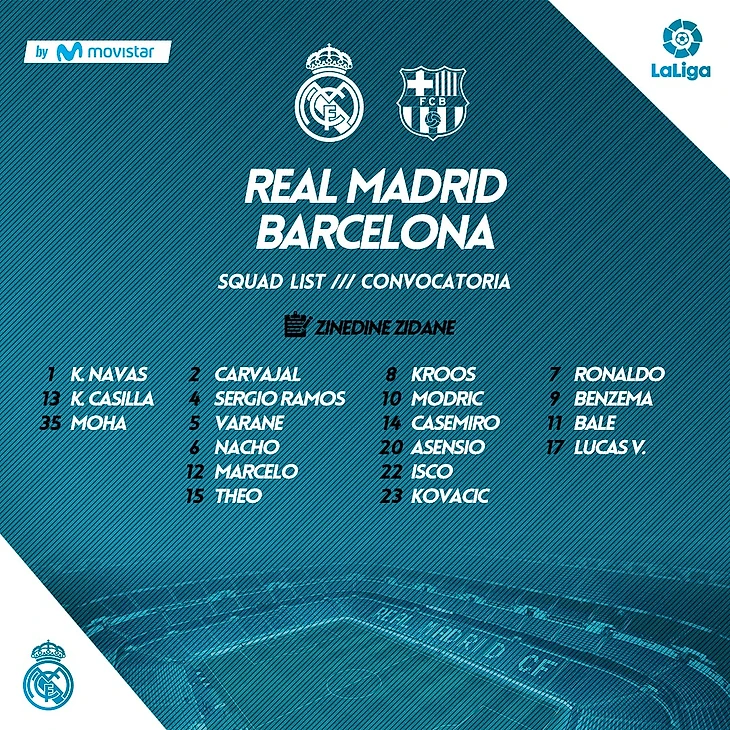 Завтра состоится главный матч декабря для "Реала" - Класико. На матч Зидан вызвал 19 игроков.