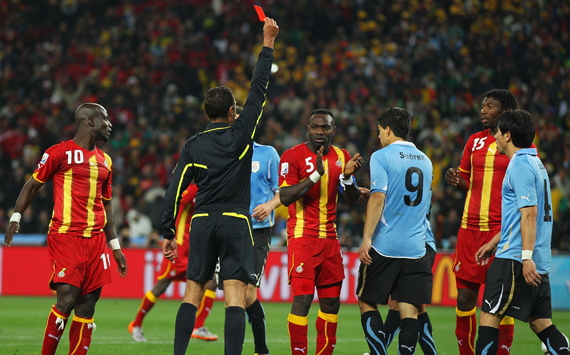Итак, Уругвай- Гана , второй четвертьфинал турнира.Рассказывать о том , что происходило на Соккер Сити до 119 минуты не имеет никакого смысла, достаточно сказать что в компенсированное к первому тайму время Мунтари вывел вперед Гану, а Форлан на 55 сравнял счет. Матч в обоюдоострой борьбе дошел Экстра таймов. На 119 минуте паника у ворот Уругвая заставляет обнаружить в себе вратарские таланты Луиса Суареса