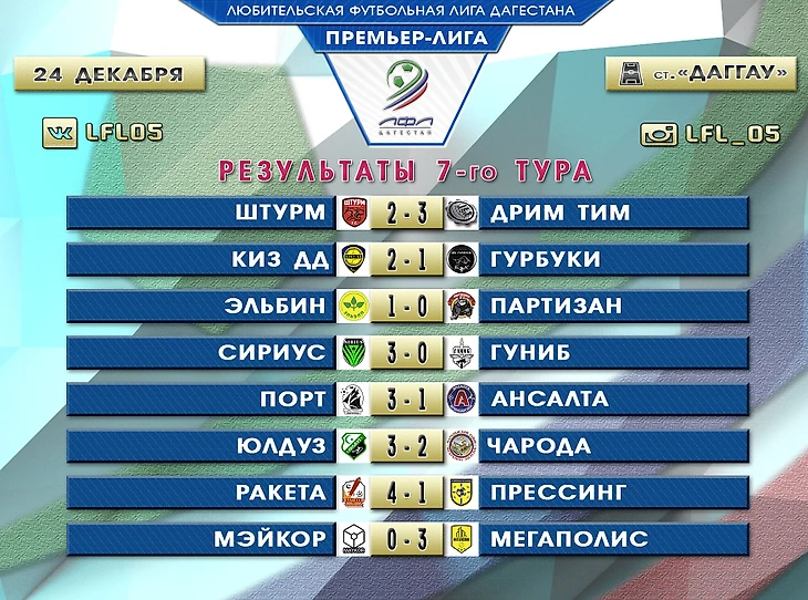 Итоги 7 тура премьер -лиги ЛФЛ Дагестана