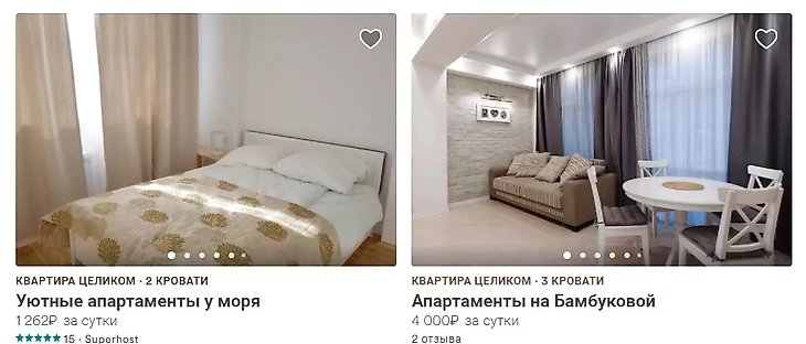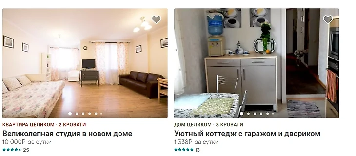 Данные с сайтов www.airbnb.ru и www.booking.com