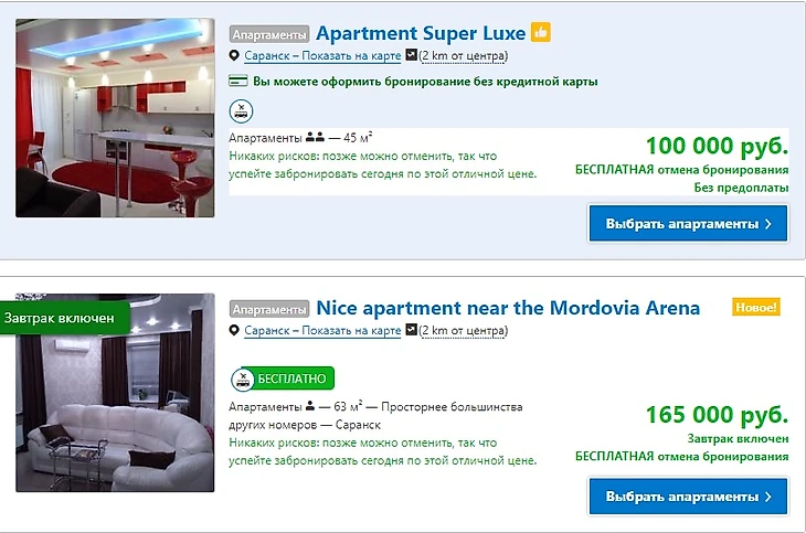 Столица Мордовии – наверное, самый проблемный город из тех, что принимают турнир; в том числе и из-за жилья. Цены на апартаменты смотрите сами, а гостиниц свободных, разумеется, уже нет.