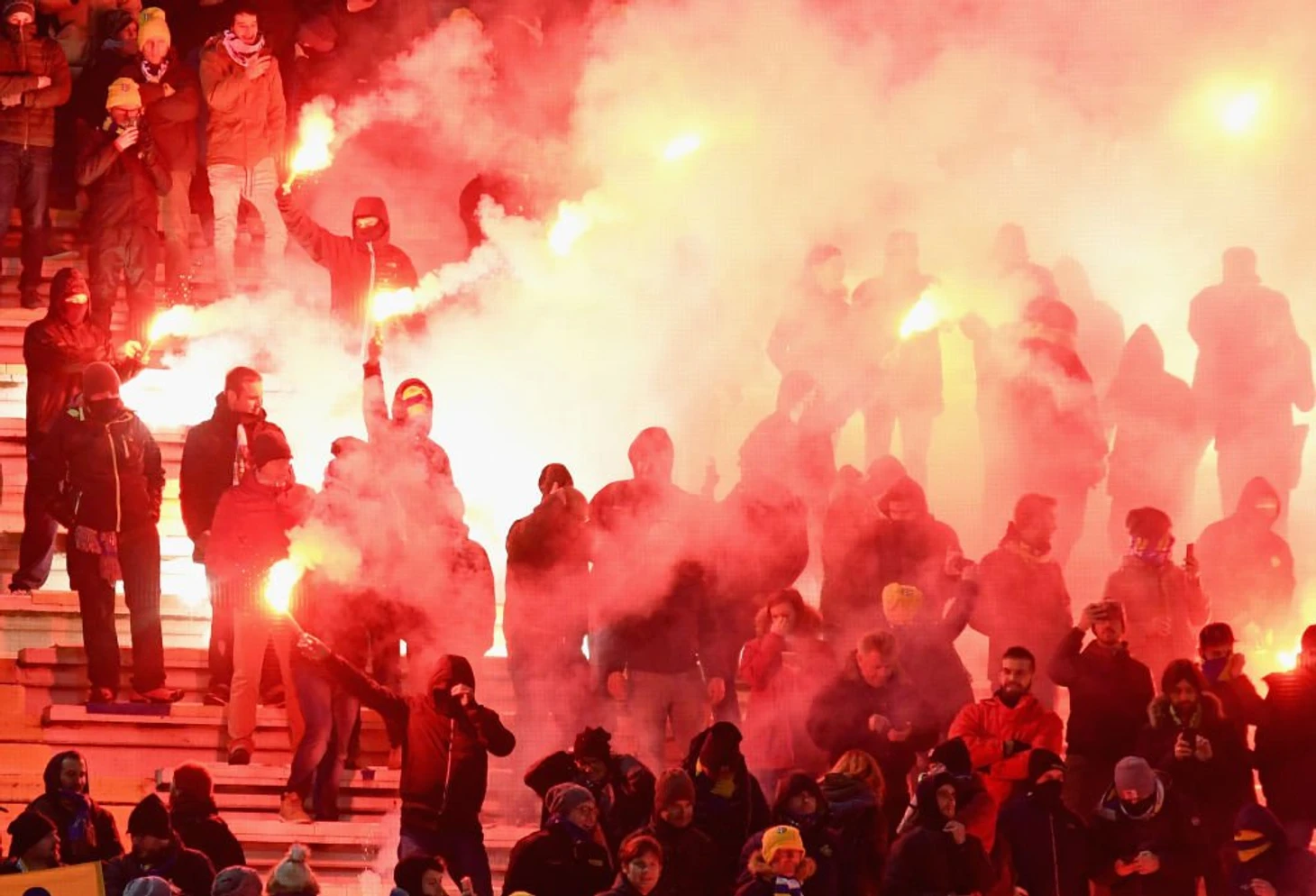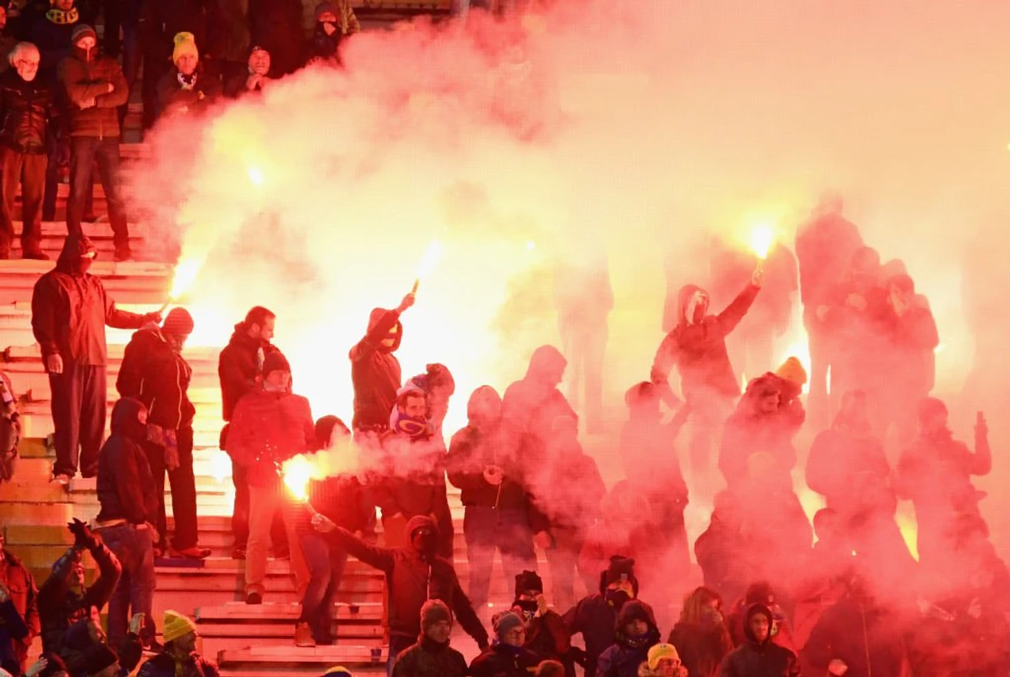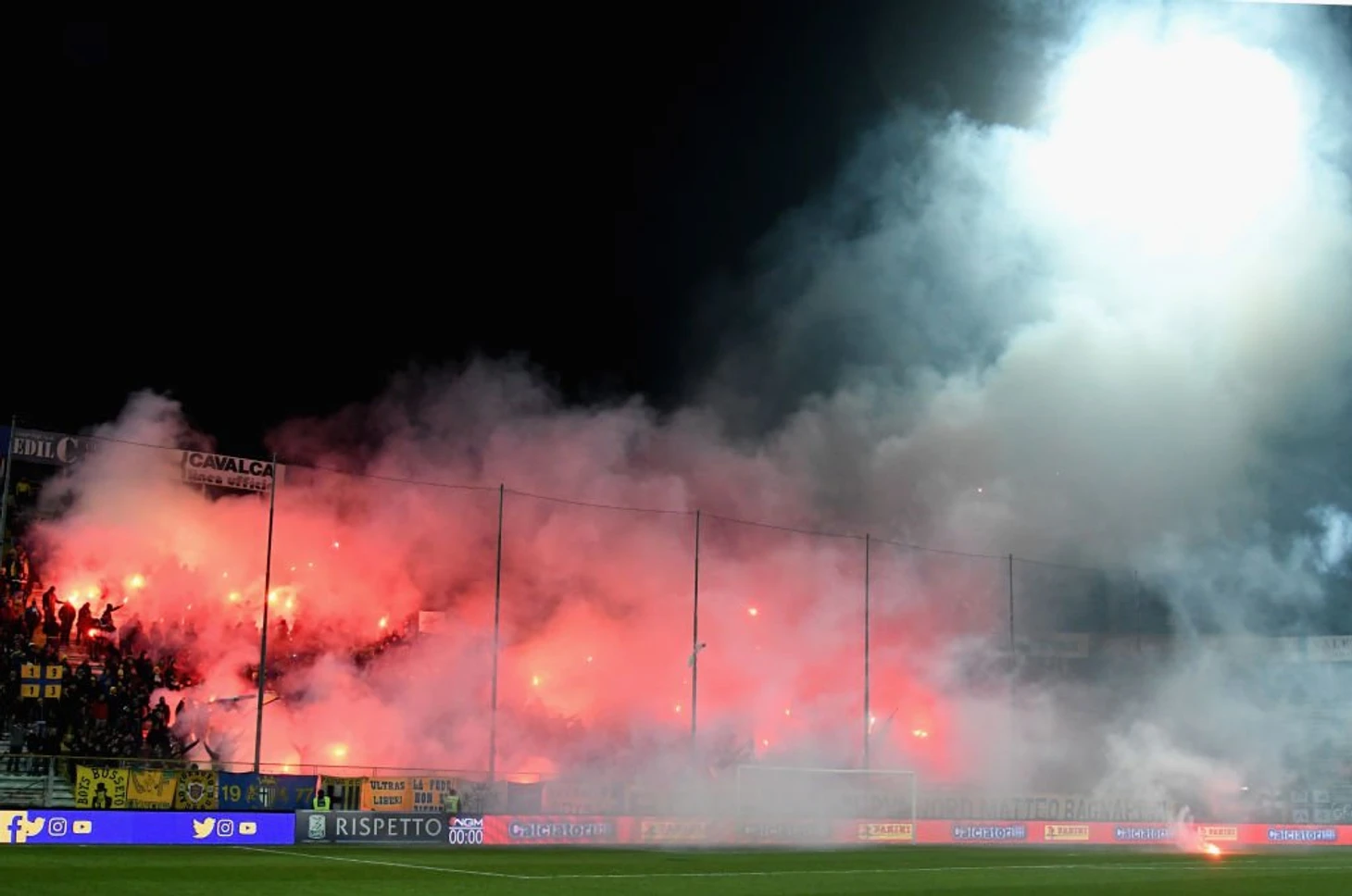 Фанаты «Пармы» перед матчем итальянской серии Б против «Специи» (0:0) устроили огненный перфоманс. Некоторые файеры попали на футбольное поле.