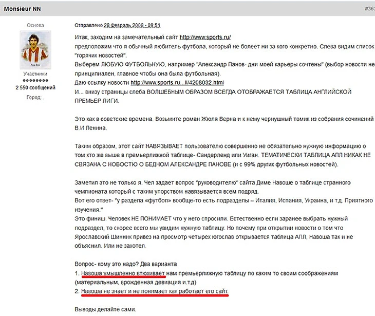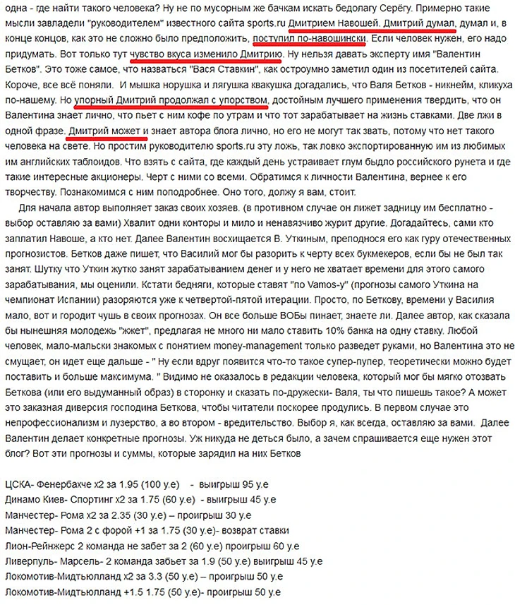 Однако зададимся же вопросом: из-за чего понадобился новый никнейм для публикации на спортс.ру? Ведь на самом деле Малиновский много где публиковался на тему кальчо и очевидно что популярному автору легче раскрутить свой блог, чем человеку с нуля.