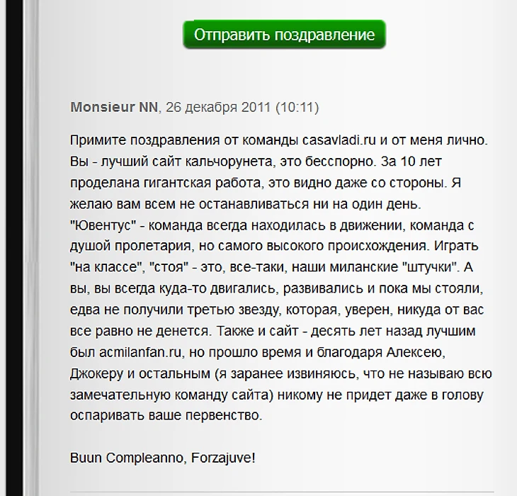 Всем ювентятам предлагаеццо провести остатки своих лет в бессмысленных срачах на гостевой книге juventus.by