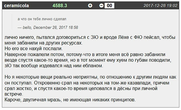 Ну опять же, как можно быть ТОП-блоггером на ресурсе, если ты поливал его владельца дерьмом и надеялся что прокуратура отправит его в тюрьму?