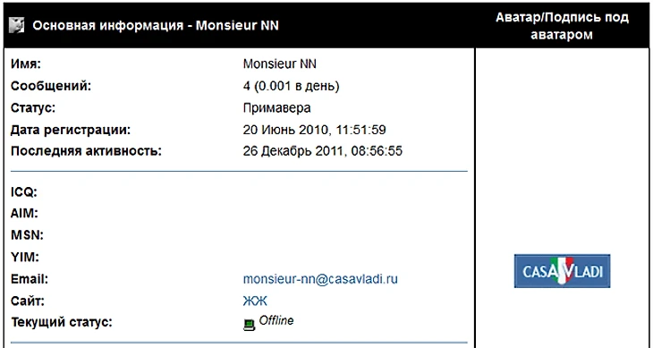 Данный сайт он позиционировал как страницу общения с великим чудо-журналистом Владимиром Озеровым, который проживает в этих ваших италиях, и ему видней. Однако никто никогда в жизни не видел и не слышал про такого человека. А как только казавлади.ру закрылся, то и про Владимира Озерова никто больше и слова ни сказал.