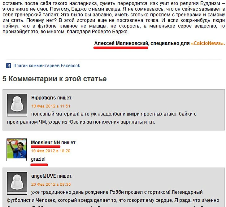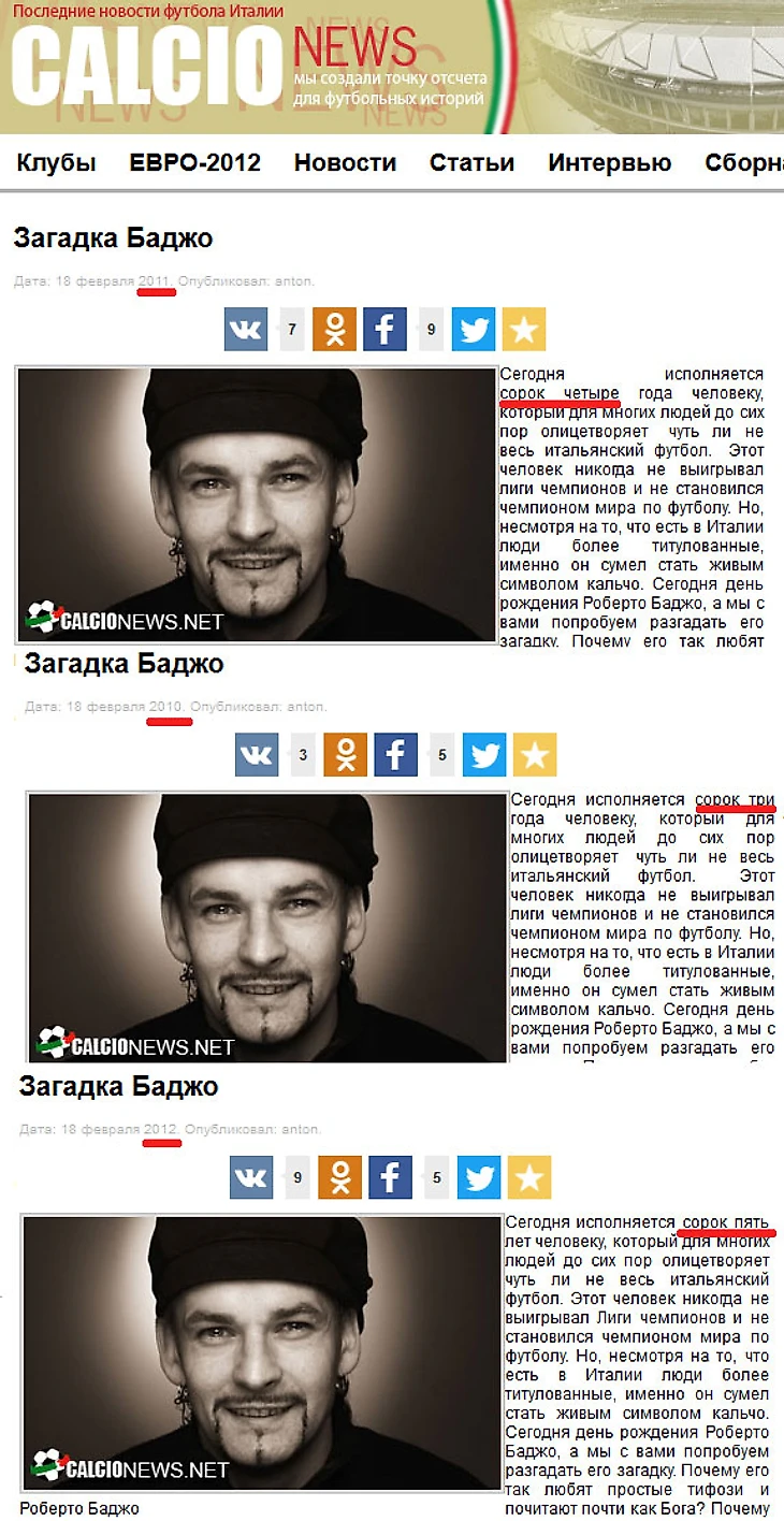 примечательно, что на КальчоНьюс его статью про баджо выкладывали три года подряд
