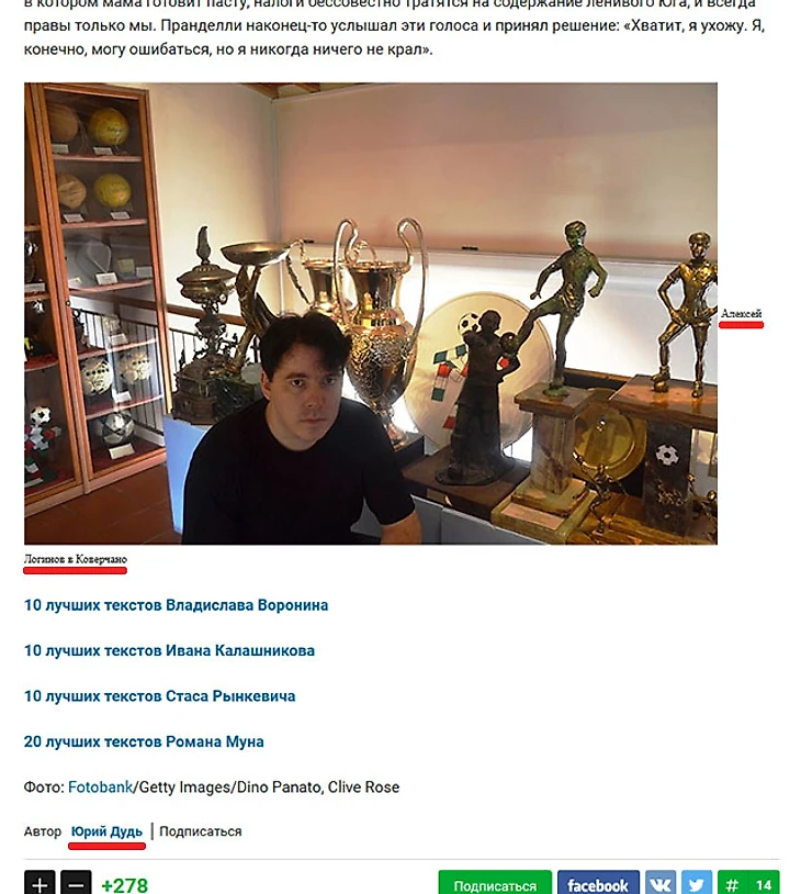 Зато при помощи отсылок на якобы великого, проживающего в Италии, журнализда, наш герой не кисло полоскал всем мозги. Мол меня не надо слушать, вы послушайте тру-итальянского журналиста.