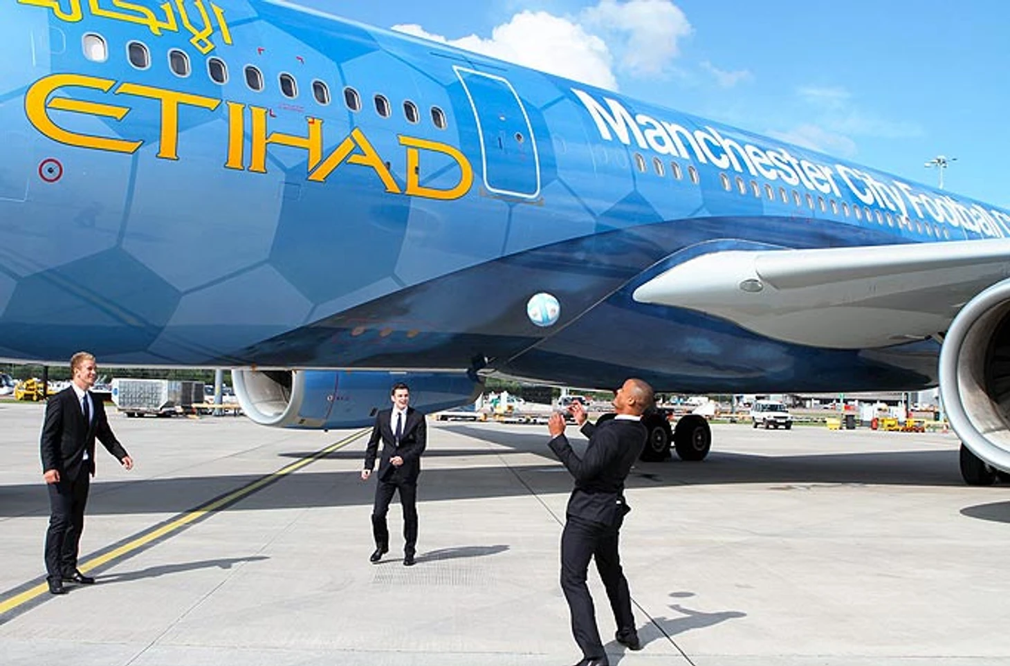 По информации Etihad, на оформление самолета ушло 18 дней и 450 литров краски. Самолет совершает регулярные рейсы между Абу-Даби и крупными городами Европы и Азии. Конечно, Airbus в символике «Сити» можно увидеть и в аэропорту Манчестера.