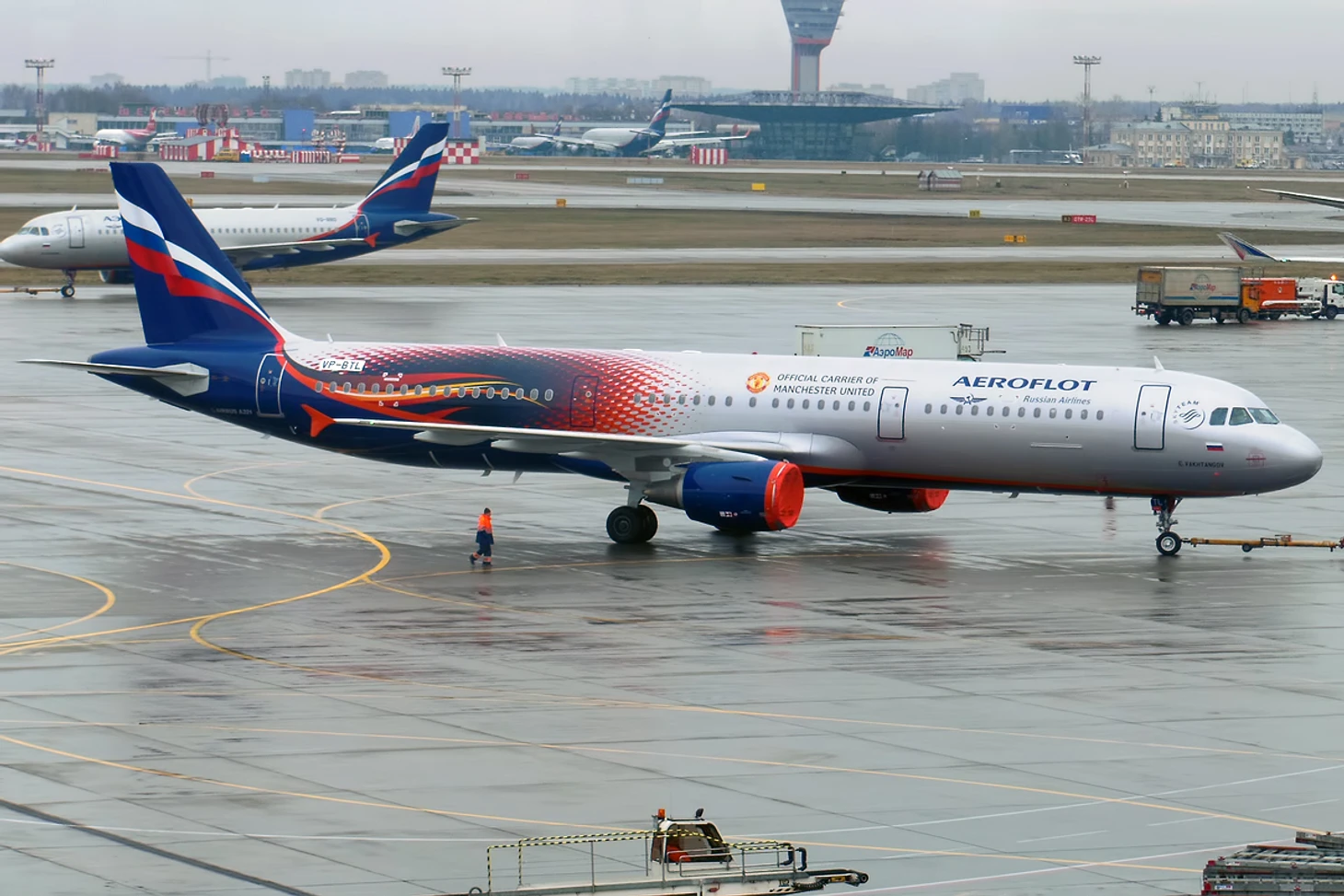 5-летнее соглашение «Аэрофлота» и «Манчестер Юнайтед» истекает уже летом этого года. Первым самолетом в ливрее клуба стал Airbus A321 с бортовым номером VP-BTL («Евгений Вахтангов»), пополнивший флот компании в конце 2013 года.