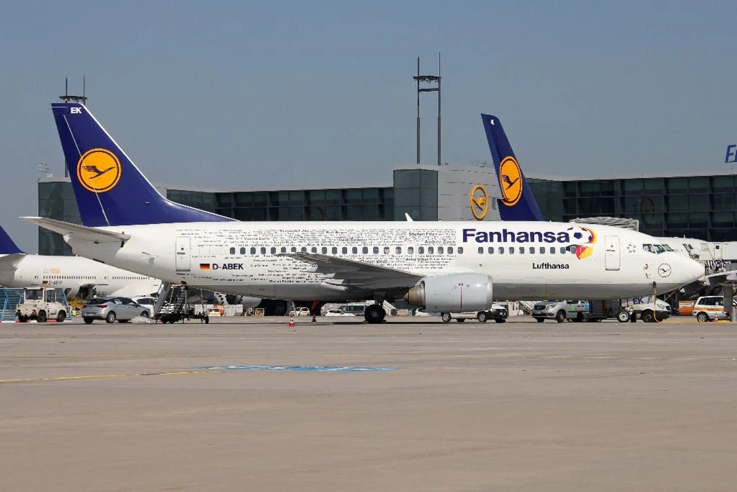 В 2014 году сборная Германии возвращалась с кубком мира из Рио-де-Жанейро на специальном самолете под брендом Fanhansa, который ей предоставила, как нетрудно догадаться, компания Lufthansa. Специально нанесенная к этому событию ливрея на Boeing 747 гласила «Siegerflieger», что означает самолет победителей.